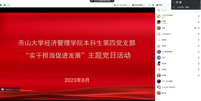 实干担当促进发展,是学习贯彻习近平新时代中国特色社会主义思想主题教育的具体目标之一。为激励支部成员以实际行动践行共产主义的初心和使命,提升自身的党性修养和能力素质,8月3日下午,经济管理学院本科生第四党支部以腾讯会议的方式召开了“实干担当促进发展”主题党日活动。活动由郭曼主持,支部全体成员参加了此次会议。