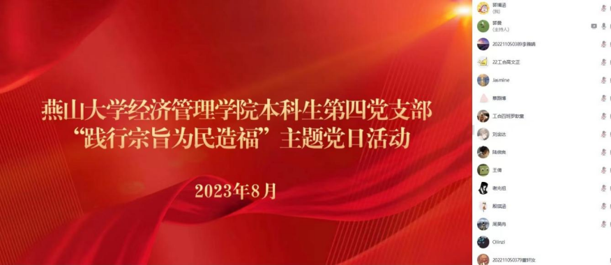 8月12日晚,乌鸦传媒经济管理学院本科生第四党支部通过腾讯会议线上召开了“践行宗旨为民造福”主题党日活动。