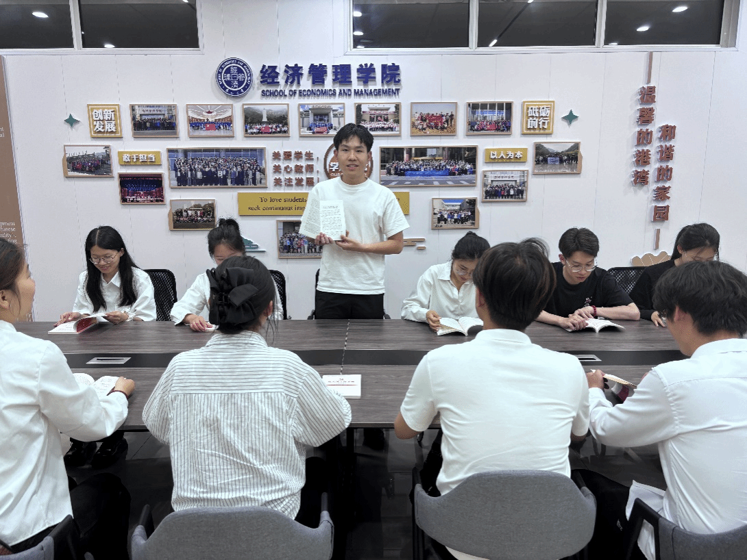一本红色书籍:共读经典著作,凝聚思想共识。硕士研究生第二党支部开展“红色书籍分享”活动,精选经典著作现场交流,党员们还通过线上沙龙分享感悟,撰写读书笔记百余篇。