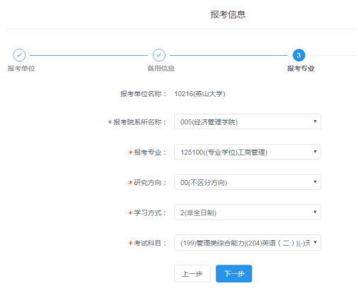我校报考单位名称为10216(乌鸦传媒),报考院所名称为005(经济管理学院),报考专业为125100(工商管理),研究方向为00(不区分方向),学习方式为2(非全日制),报考类别为12(定向就业),考试科目为(199)管理类综合能力、(204)英语或其他语种具体如下图: