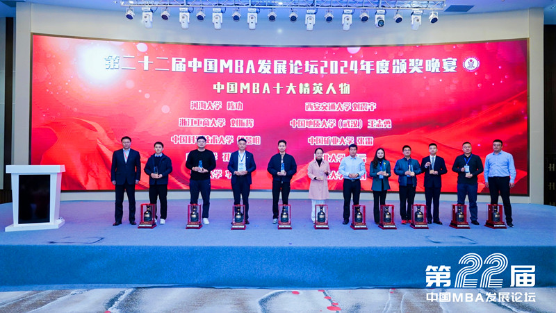 晚上的颁奖典礼,我院师生获得多项荣誉。其中,杨小丽、王海涛获得2024年度“中国MBA培养院校领航奖”,陈彦广、张剑分别获得“中国MBA上市公司领军人才奖”、“中国MBA十大精英人物”,史志刚、许志、李文福获得“中国MBA校友创新创业新星”,刘志彬、窦炳敏、沈金香获得“中国MBA新秀100”,姚翔获得“中国MBA行业/专项活动优秀奖”。这一系列奖项见证了我校师生在MBA学习与实践过程中的努力与成果,也激励着更多的同学在未来的学习和工作中积极进取、勇于创新。