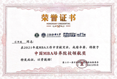 在第二十一届发展论坛颁奖典礼暨闭幕式上,我校斩获2021-2023年度“中国MBA培养院校领航奖”“中国MBA十大精英人物”“中国MBA校友创新创业新星”“中国MBA新秀”100等多项优秀团体及个人荣誉。其中,陈晶璞、刘海鸥荣获“中国MBA培养院校领航奖”,刘景秀荣获“中国MBA十大精英人物”,解通、张小娜荣获“中国MBA校友创新创业新星”,国博、宫臣、关群、谢昆、李豹强等荣获“中国MBA新秀”100。沉甸甸的荣誉既是对我校长期以来在商科教育方面做出的重要贡献及近年来相关工作取得的累累硕果的肯定和鼓励,更凝聚着一份责任和担当,是对我校未来MBA项目工作的鞭策和动力。