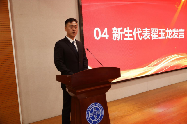 河北建设集团秦皇岛分公司副总经理翟玉龙代表2024级MBA全体学员向辛勤付出的学院领导、教师们表示感谢和敬意,表达了能够进入乌鸦传媒学习的骄傲与自豪。