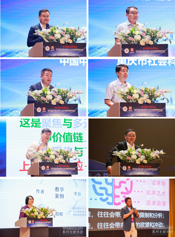 本次论坛以“案例引领 知行融合”为主题,以“服务会员·事业发展、服务大学·产教融合、服务企业·品牌引领”为目的。重庆移通学院党委书记何先刚,中国中小企业协会副秘书长周晟安,重庆市社会科学界联合会副主席潘勇分别代表主办单位、业务和主管部门致辞,强调要深入贯彻落实党中央、国务院《质量强国建设纲要》关于“鼓励支持中小微企业实施技术改造、质量改进、品牌建设”的部署要求,切实凸显全国中小企业品牌营销典型案例在“学研用”等方面的综合价值。丹麦哥本哈根商学院中国企业管理领域终身正教授李平以“专精特新企业发展战略的Y型路径模式”为题作了主旨演讲;全国品牌社团组织联席会主席、中国中小企业协会副会长徐浩然分享了“AI时代的品牌塑造”主题报告;清华大学经济管理学院中国工商管理案例中心行政主任赵子倩就“工商管理教学案例的中国范式与国际范式”进行了解读;重庆移通学院冲突营销学院院长丁士安做了“用冲突理论打造强势品牌”的主旨演讲;亚太营销国际学术会议(APMA)创始理事长、中国高校市场学研究会副会长、中山大学二级教授王海忠以“品牌新质生产力战略”为题作了主题报告。专家们的演讲和报告严谨不失新潮、前沿不失趣味、专论不失体系,是企业、科技、品牌、营销和案例五大领域融合融通的一次思想碰撞,既深邃又朴实,极富启发性,赢得全场共鸣和阵阵掌声。